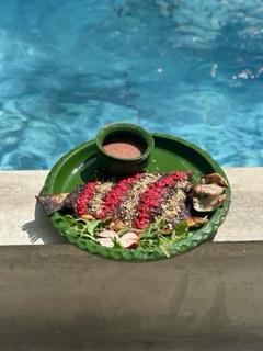 ترکیبات: مرغ، کشمش، آلو، قیصی، رب گوجه